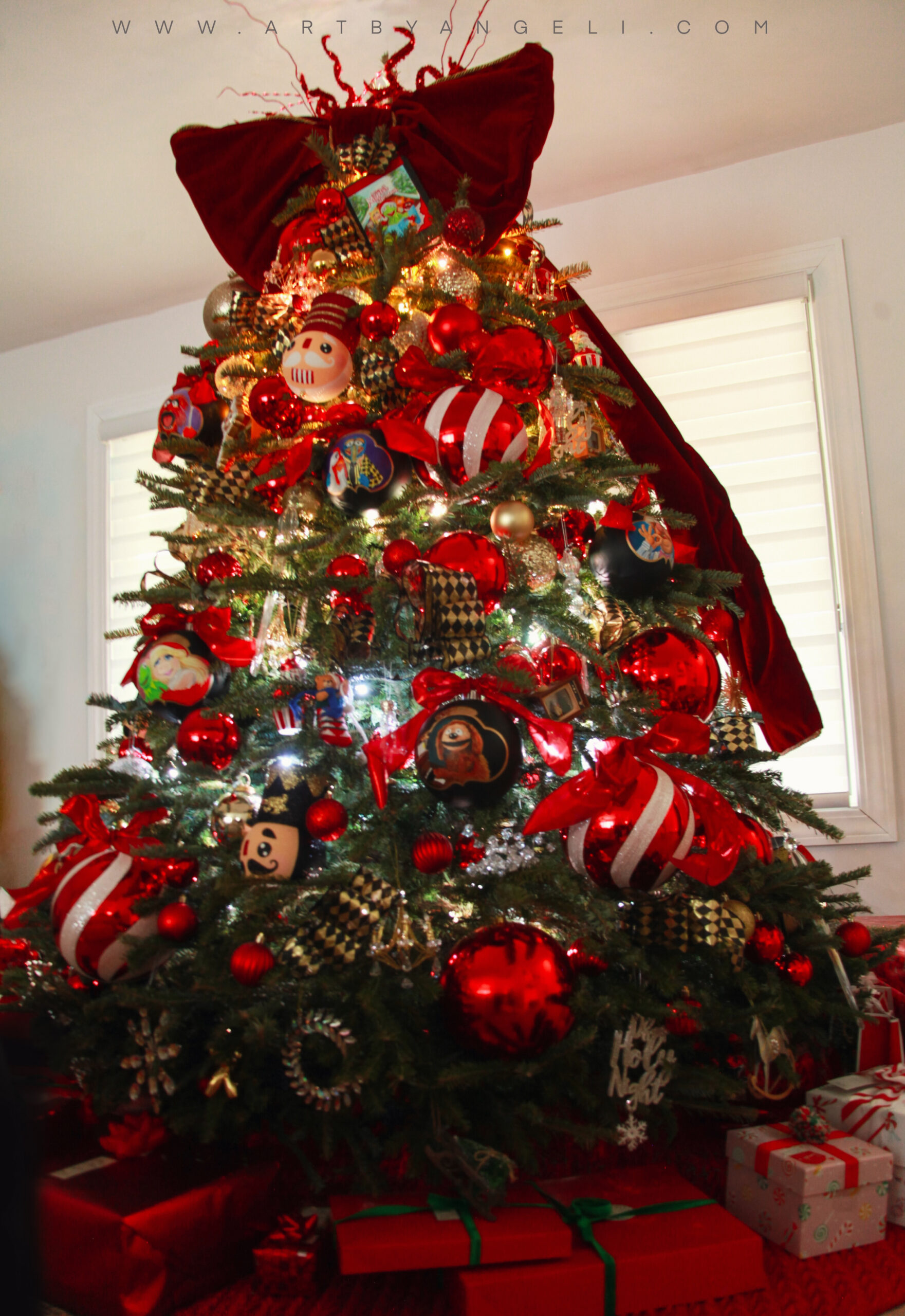 This year, I created something unique for my family and felt incredibly satisfied to complete it on schedule. I made a Muppet Christmas tree. Maintaining the traditional classic look with red ribbons. I trust you find pleasure in these delightful small works of art.
